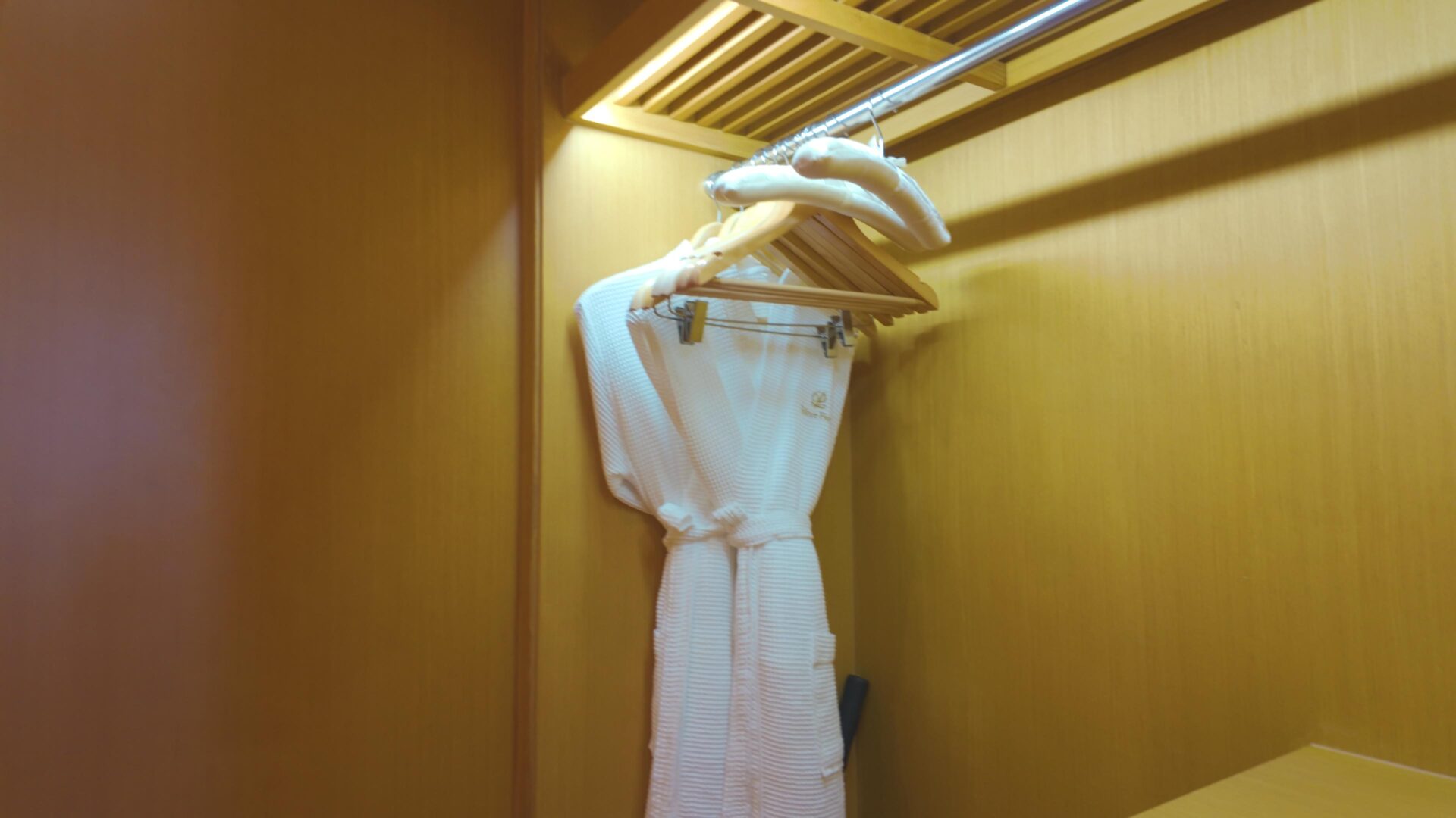 バスローブにスリッパ、金庫に傘もおいてあります。