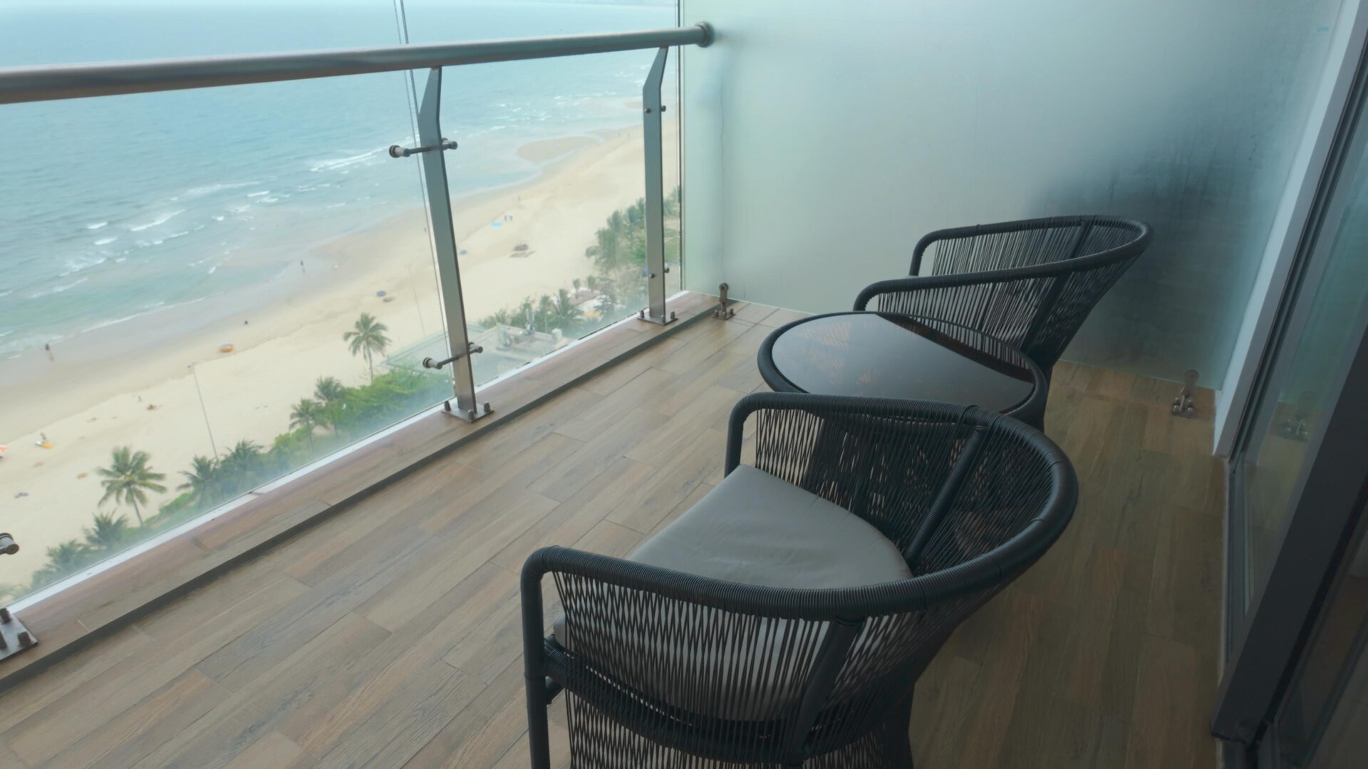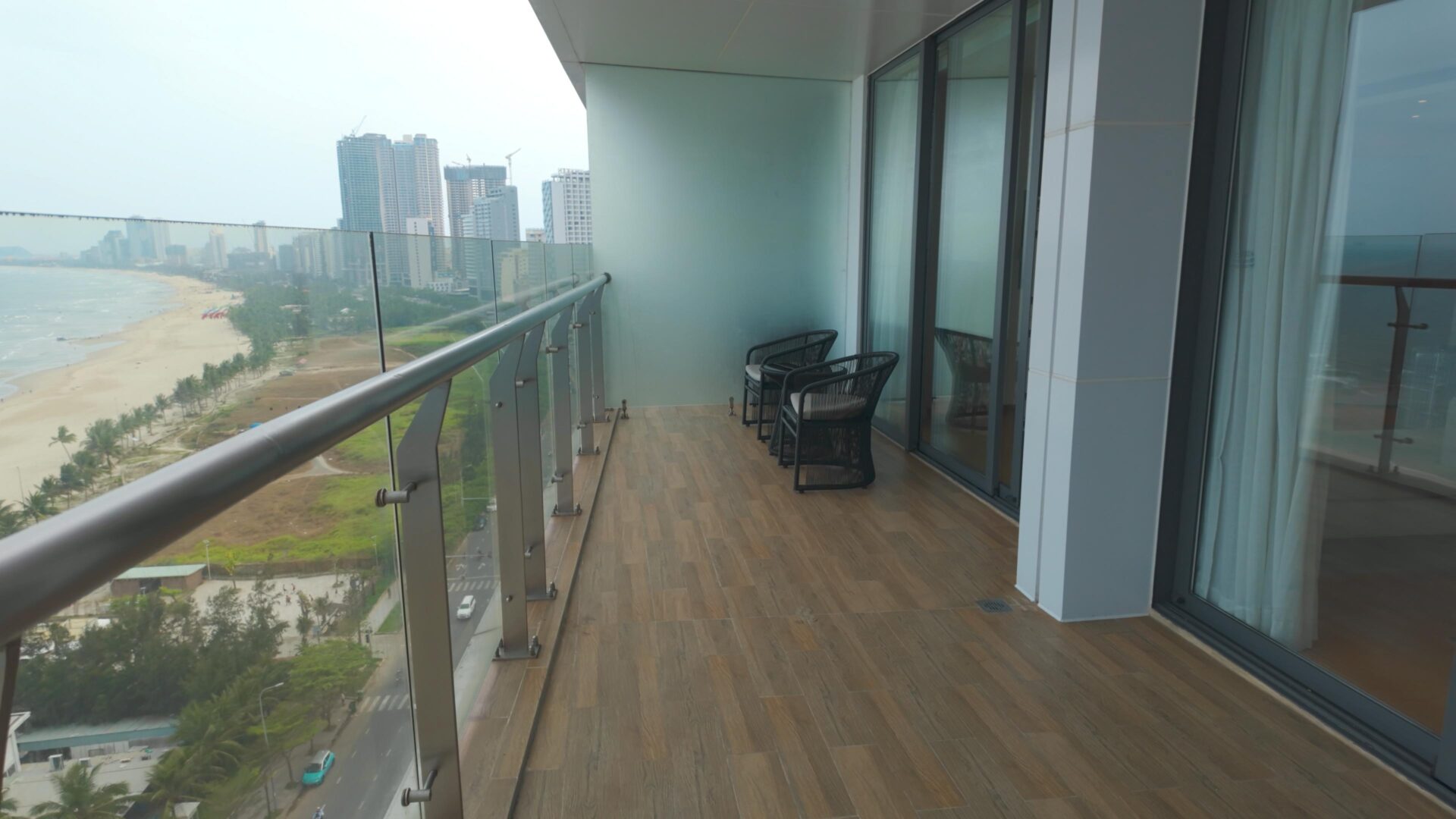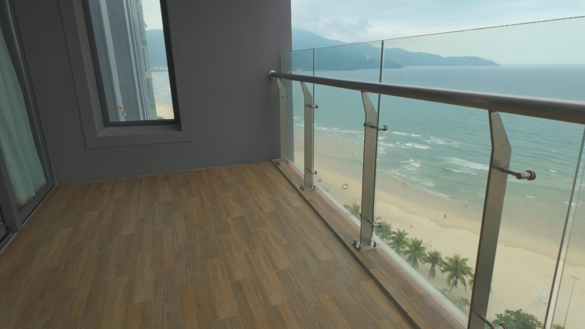 バルコニーの形は少し斜めになっていて、左側にかけてより広くなっていました。