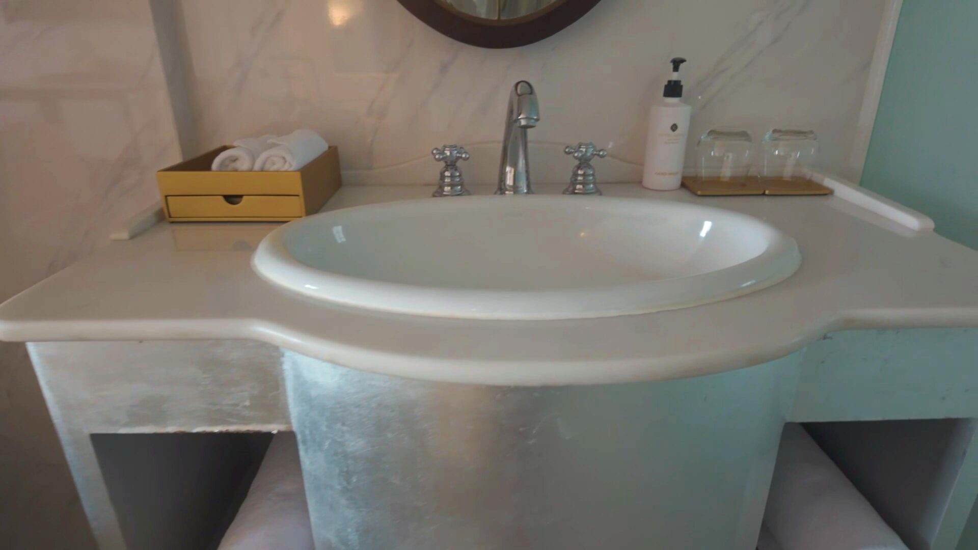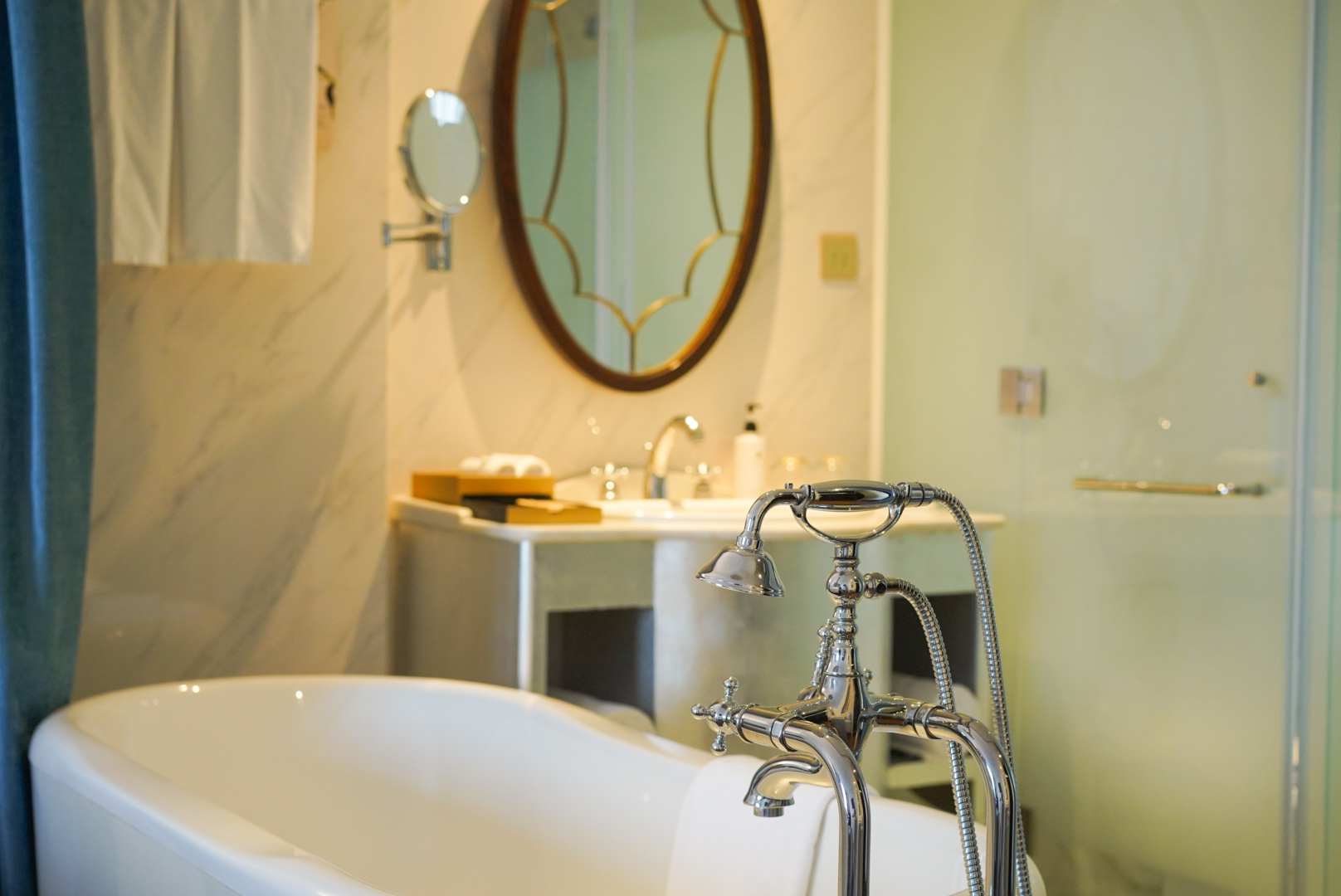 そして一際目を引くこちらのバスルーム。仕切りがドアではなくカーテンなので、友人同士だとちょっと気まずいかも笑(私はひとりなので常時開けっ放しでしたが)