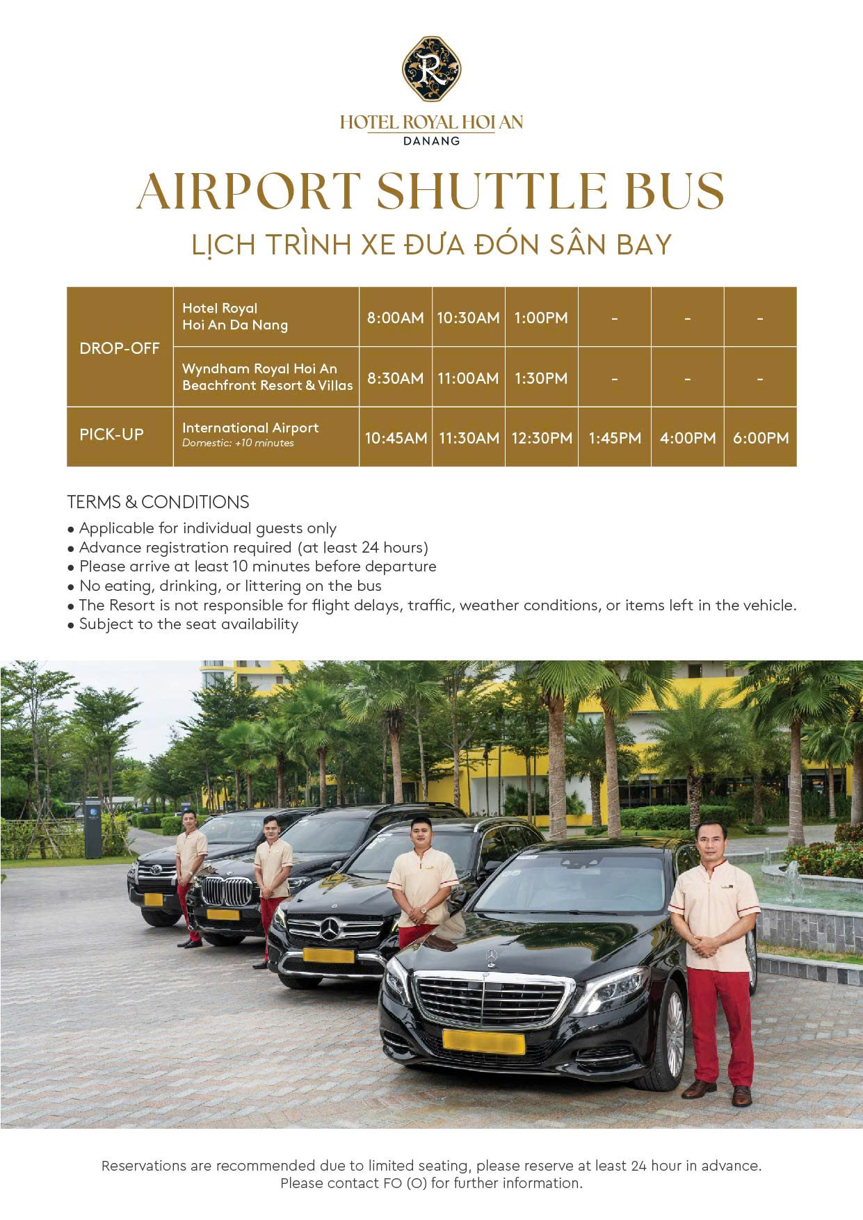 Our driver will be holding a welcome board with the Hotel Royal Hoi An logo at the meeting point.