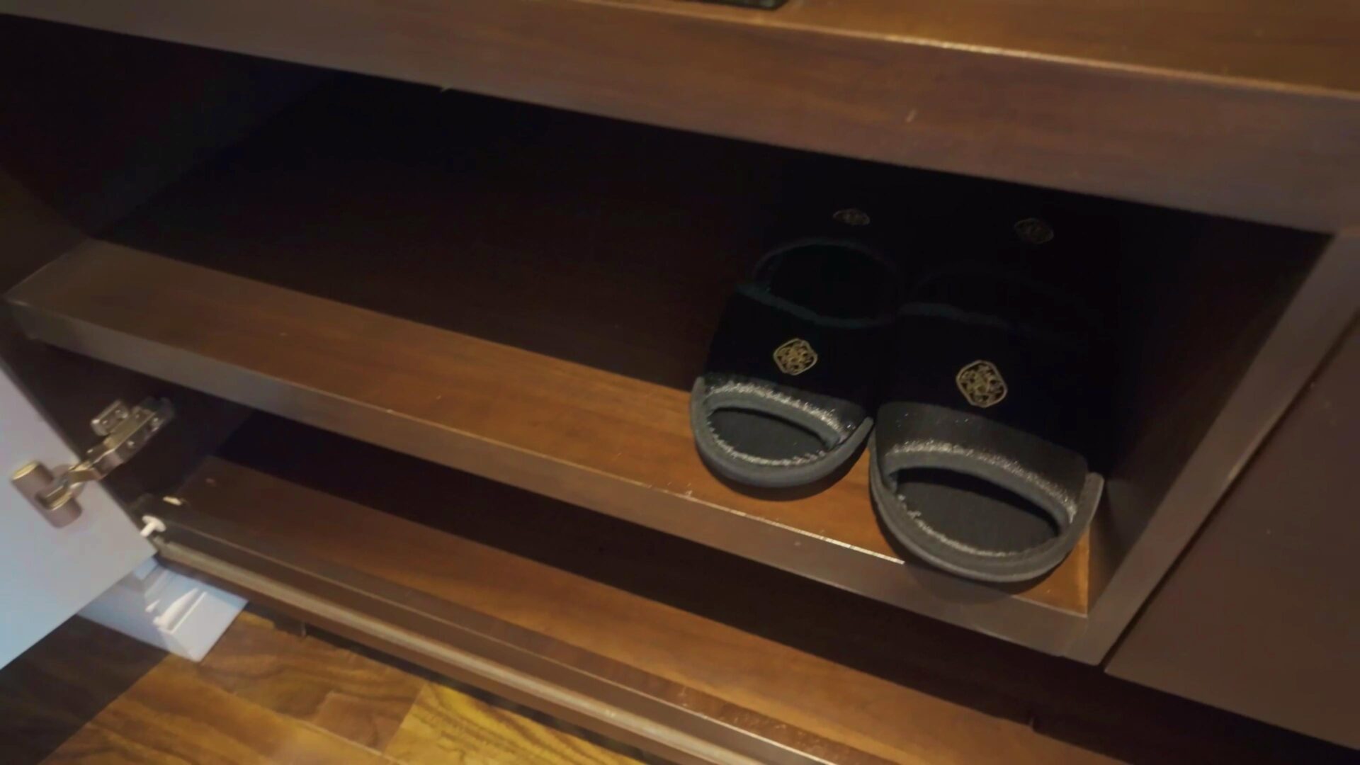 このスリッパ、サテン生地っぽくて高級感がありました。持ち帰りは有料とのこと。