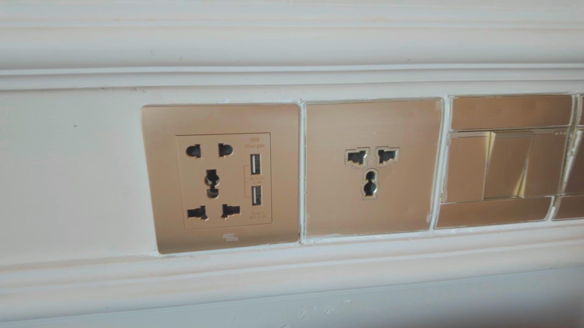 ベッドサイドのコンセントはマルチタイプなので、日本のプラグはそのまま挿せます。