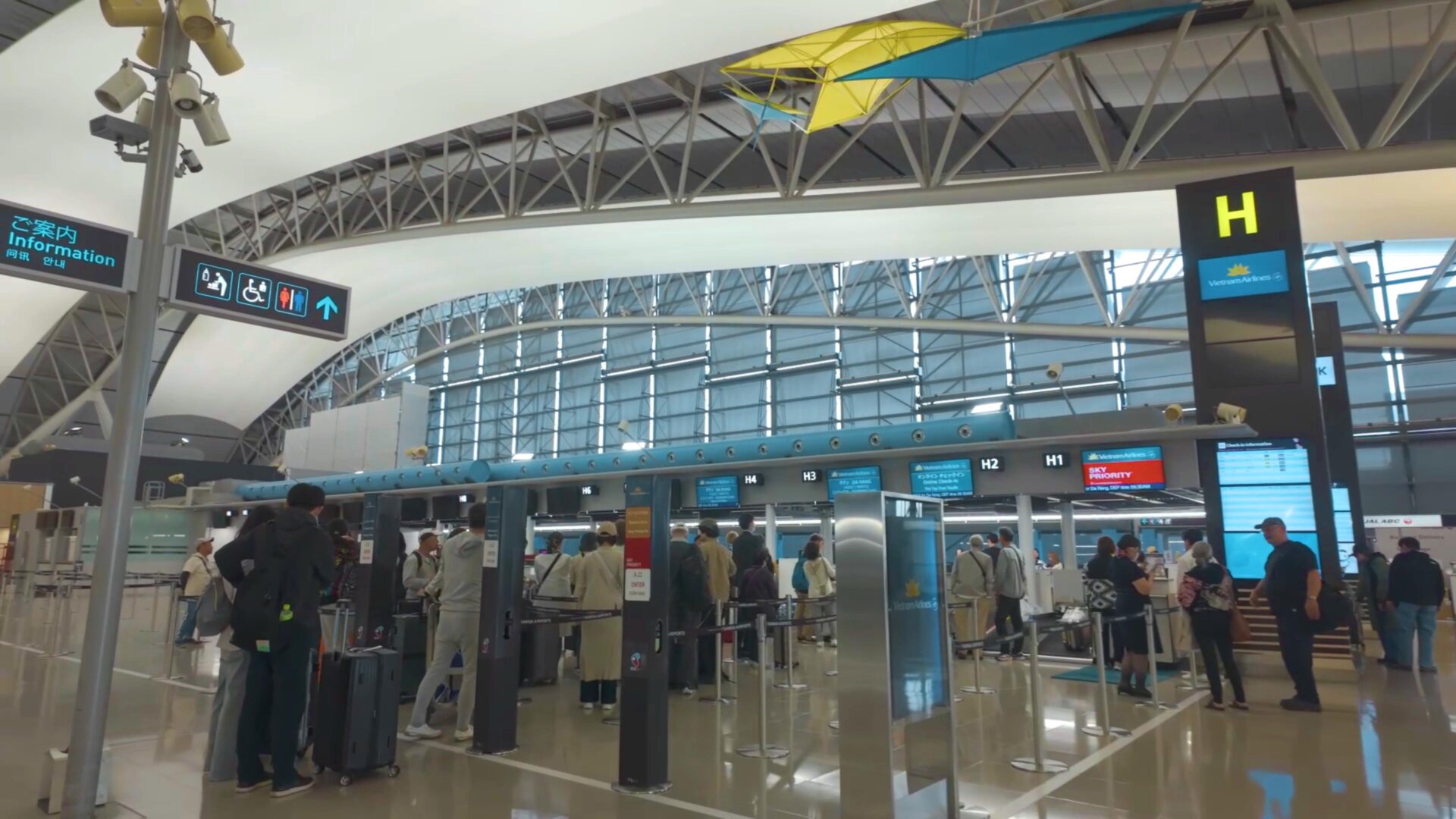 チェックインカウンターはHでした。