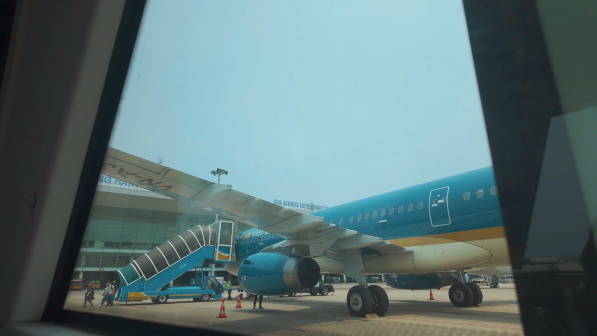 ダナン国際空港では、タラップが前後に設置されるので後ろからも降りられたのがよかった!