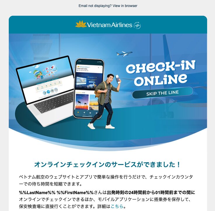 搭乗時間24時間前を過ぎると、以下のメールが届きます。